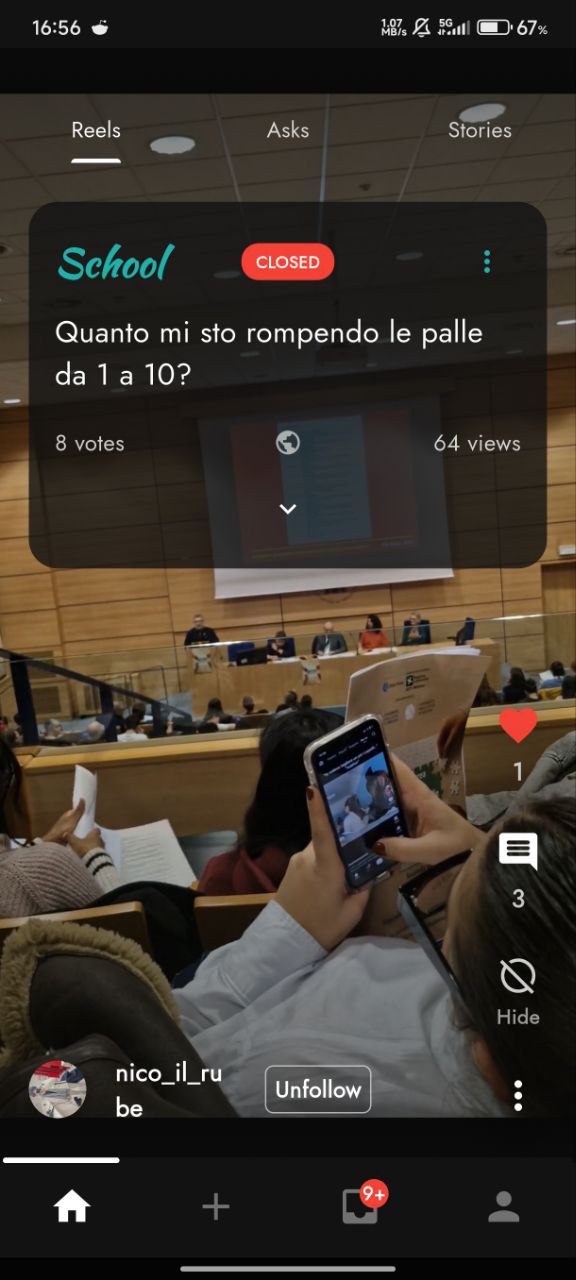 Migliaia di screenshot reali dai sondaggi e dalle storie — le persone stanno già usando Rate per chiedere, votare e divertirsi insieme.